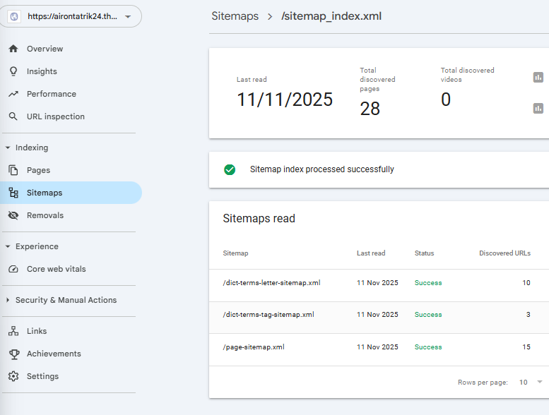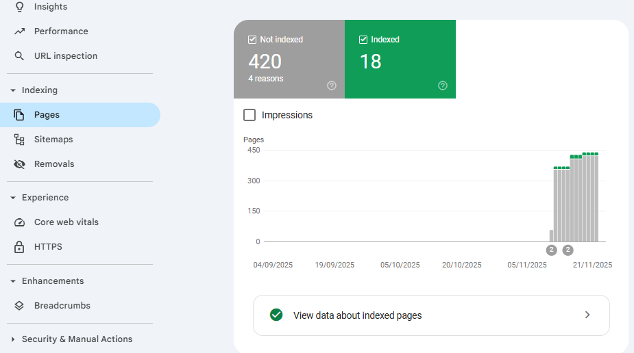 2. Kontrolli, et 5-10 lehte on indekseeritud.