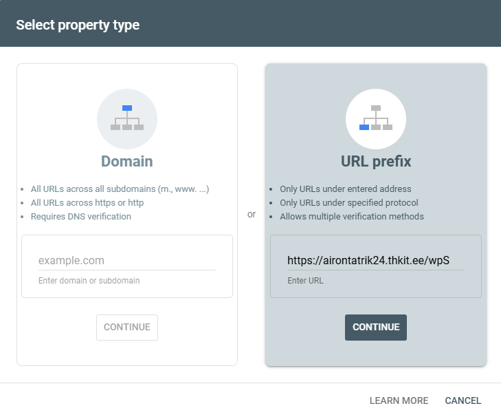 - Kasutamine Google Search Consoli ja verifitseerimine HTML koodi