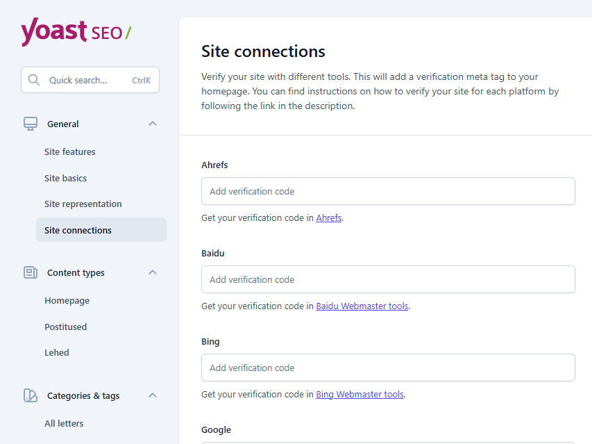 - SEO plugini seaded: